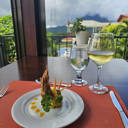 A szállás naponta kontinentális reggelivel szolgál. A La Fortuna városi Linda Vista magába foglal egy éttermet Amerikaanse fogásokkal. A Costa Ricaanse fogásokat kínáló Fusion Grill Restaurant csupán 1 km-re található a La Fortuna városi hoteltől.
